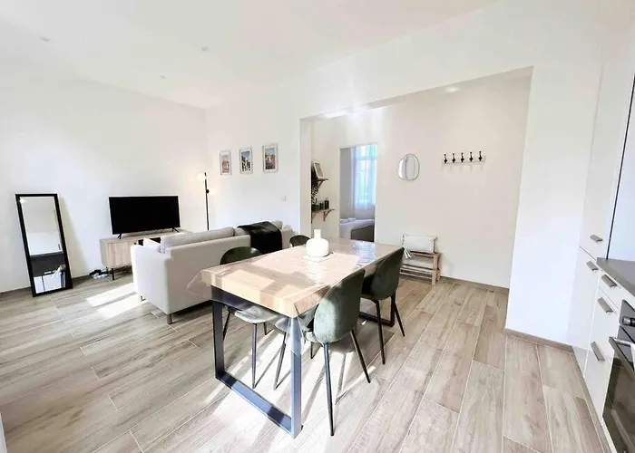 Le Bruna: Apt 4 Prs, Clim, 10 Min Plages 昂蒂布设有大厨房和配办公桌,咖啡机/煮茶机 和卫星频道平板电视的客房. 这间公寓方便客人前往胡安灣,距离昂蒂布角不到4.5公里.